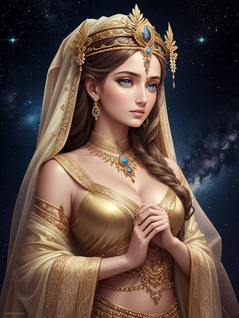 Hera es una de las diosas más importantes de la mitología griega. Su nombre significa "señora" o "reina" y refleja su posición como la esposa de Zeus, el rey de los dioses. Hera es la diosa del matrimonio, las mujeres, el cielo y las estrellas. Su equivalente en la mitología romana es Juno.